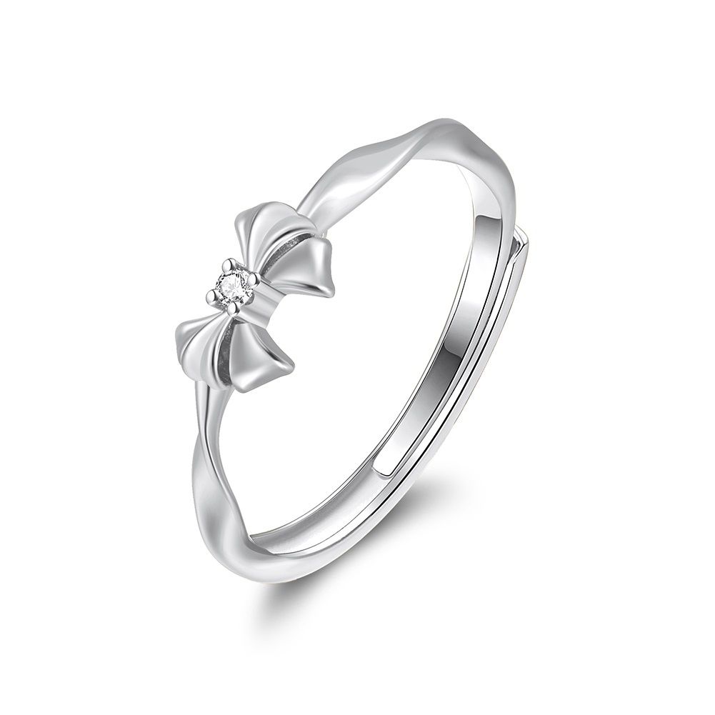 This elegant 925 Sterling Silver Adjustable Ring features a delicate bow tie design, perfect for adding a touch of charm to any outfit. Crafted from high-quality sterling silver and plated with rhodium for a sleek, polished finish, the ring is adorned with a dazzling +5A cubic zirconia stone that adds sparkle and sophistication. Its adjustable size ensures a perfect fit, making it a versatile addition to your jewelry collection. Ideal for everyday wear or special occasions!