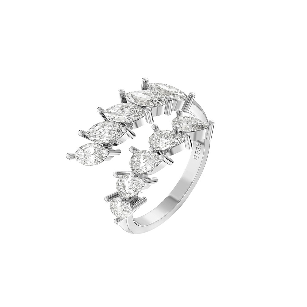 Elegantly designed for her, this 925 sterling silver ring features sparkling AAAA clear CZ stones that add a touch of sophistication. Rhodium-plated for enhanced shine and durability, this ring resists tarnish and maintains its brilliance over time. With an adjustable band, it offers a comfortable and flexible fit, making it perfect for any occasion. This versatile ring is a beautiful gift or a chic addition to her jewelry collection, combining timeless charm with modern elegance.