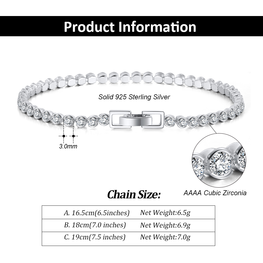 925 Sterling Silver Bezel Setting Tennis chain Bracelet 6.5″ for her