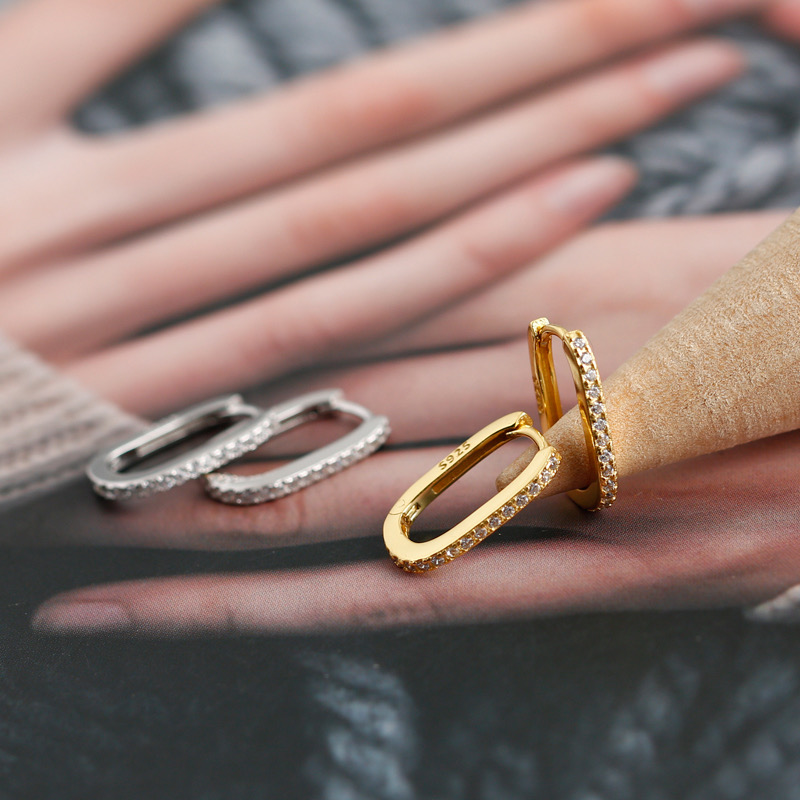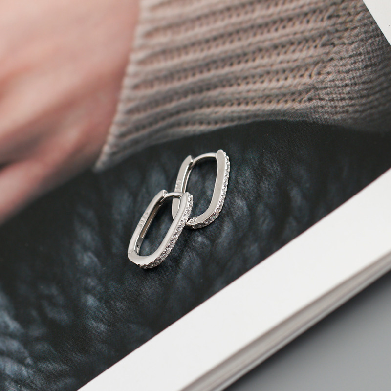 925 Sterling Silver Hoop Earrings 14 mm with multiple stones
