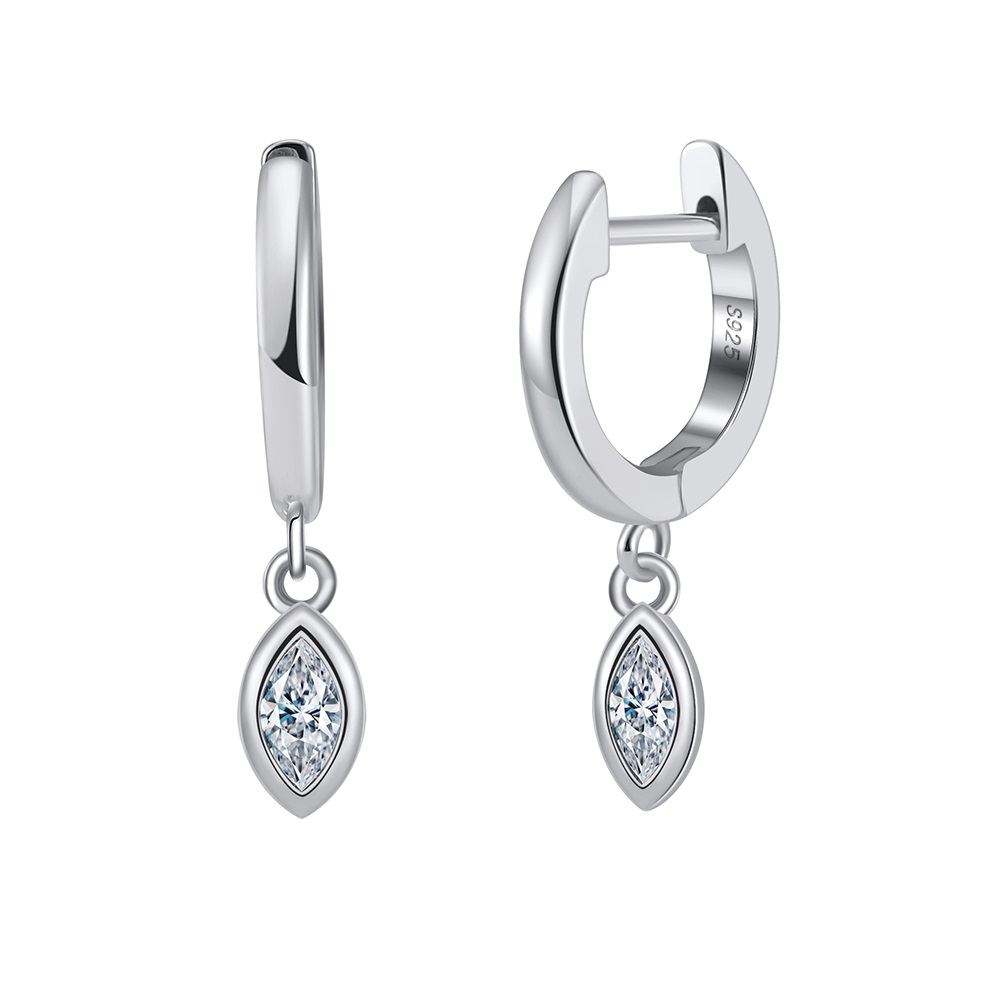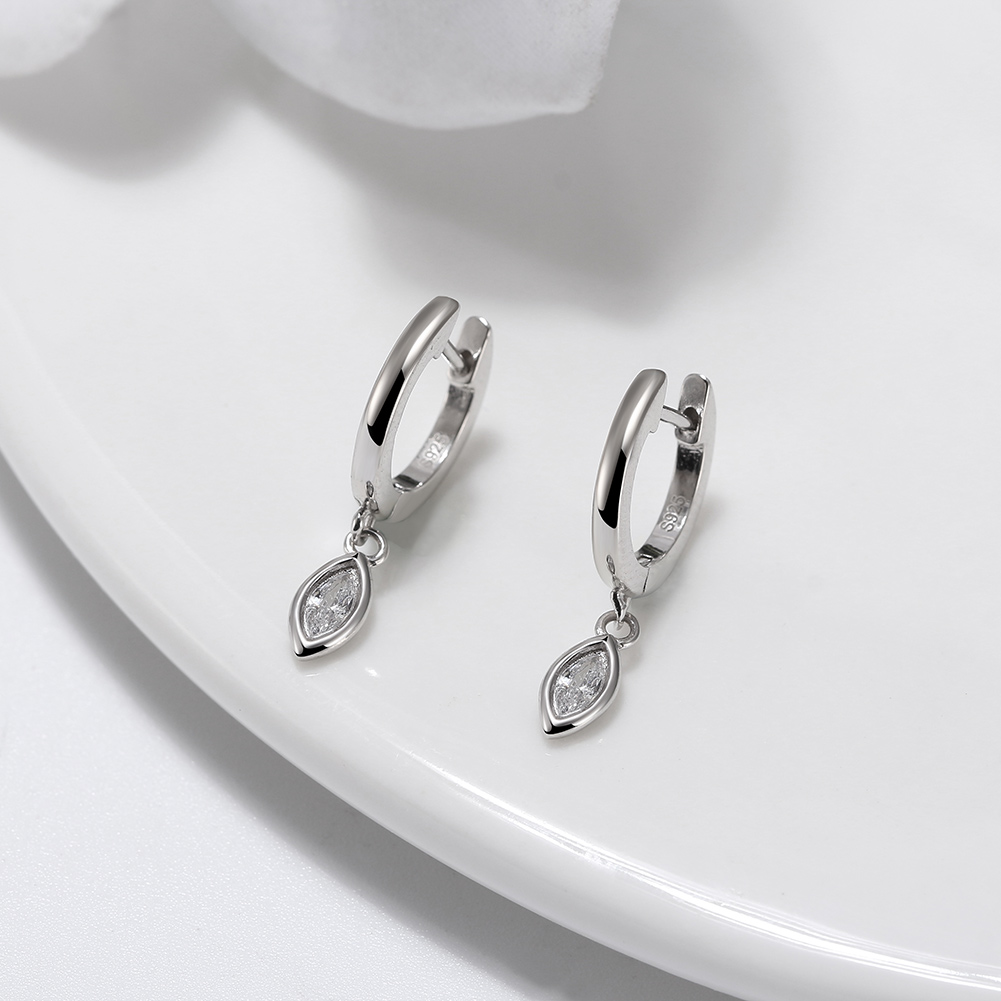 925 Sterling Silver Hoop Earrings with white stones 9mm Drop Earrings