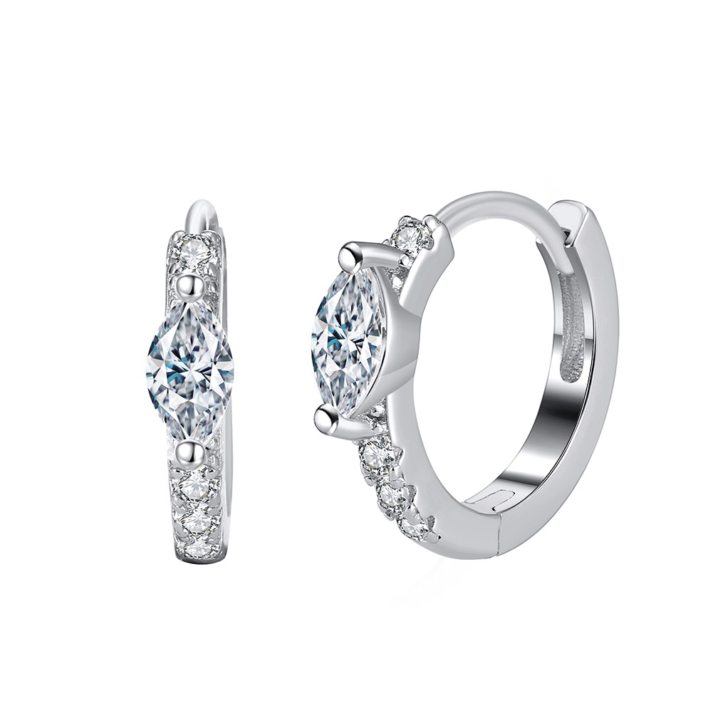 925 Sterling Silver Hoop Earrings with white stones 9mm