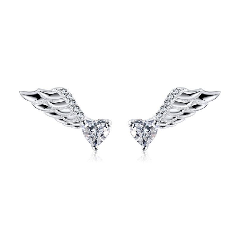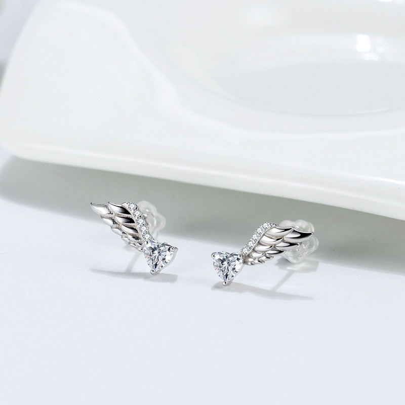 Gracefully designed, these 925 sterling silver wing-shaped stud earrings exude elegance and charm. Adorned with sparkling AAAA cubic zirconia stones, they offer a radiant sparkle to enhance any outfit. Measuring 14mm in size, their unique wing design symbolizes freedom and sophistication. Rhodium-plated for a lustrous, tarnish-resistant finish, these earrings are both durable and timeless. Perfect as a meaningful gift or a standout addition to her jewelry collection, these studs are a symbol of style and grace.