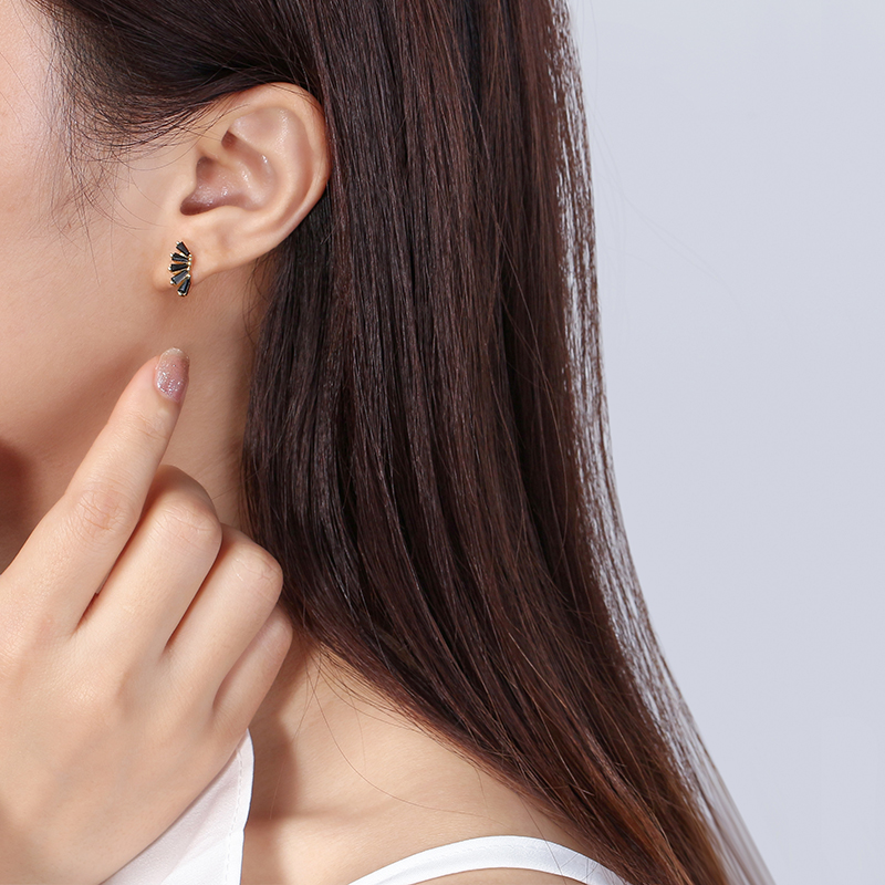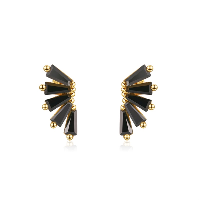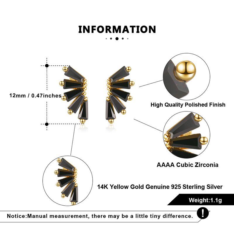 Bold and sophisticated, these 925 sterling silver stud earrings feature striking 12mm black AAAA cubic zirconia stones, adding a touch of elegance to any look. Plated with 14K yellow gold, the earrings boast a luxurious finish and enhanced durability. Designed for the modern woman, these studs are perfect for everyday wear or special occasions. A statement piece that makes a thoughtful gift or a glamorous addition to her jewelry collection.