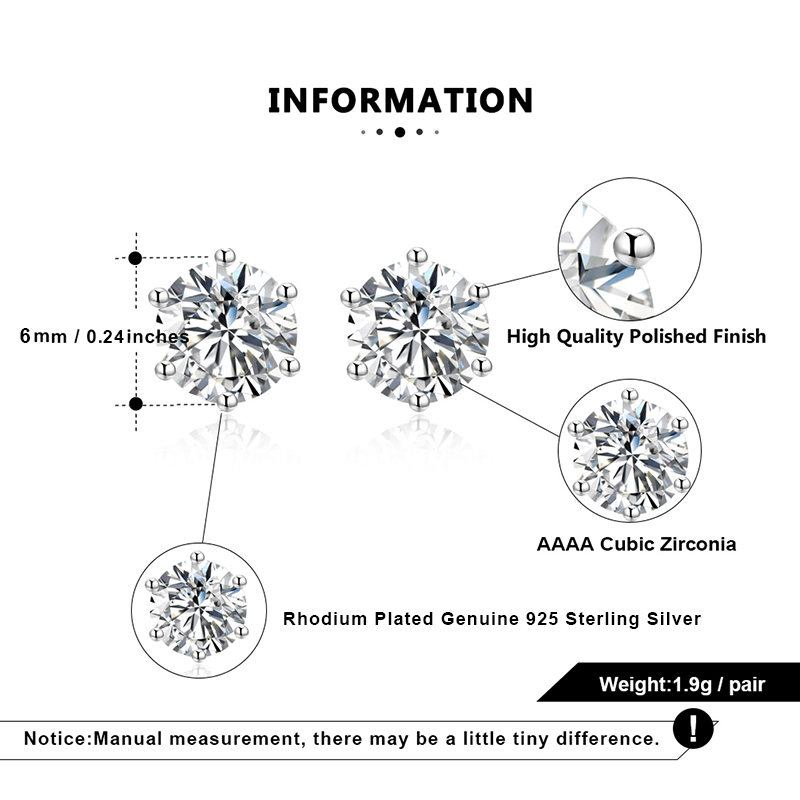 925 Sterling Silver Stud Earrings with clear stones 8 mm for her