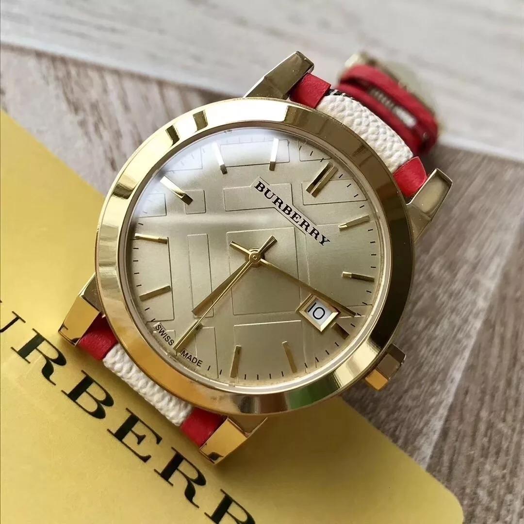 BURBERRY BU9139 Haymarket Red Gold Wristwatch for Women