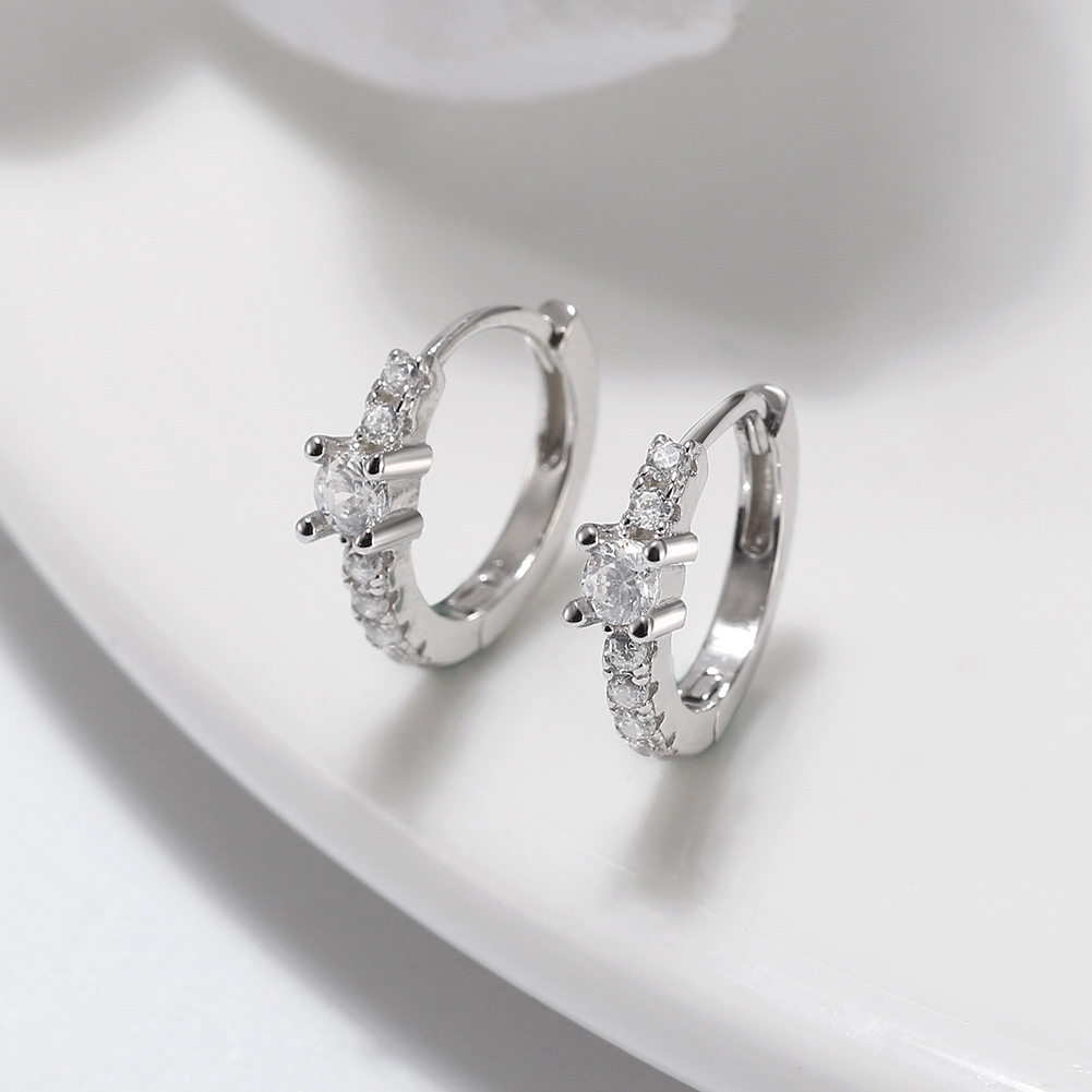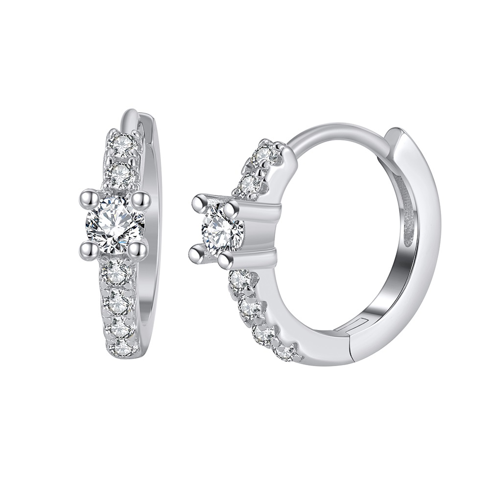 Elegant 925 Sterling Silver Hoop Earrings with white stones 9mm