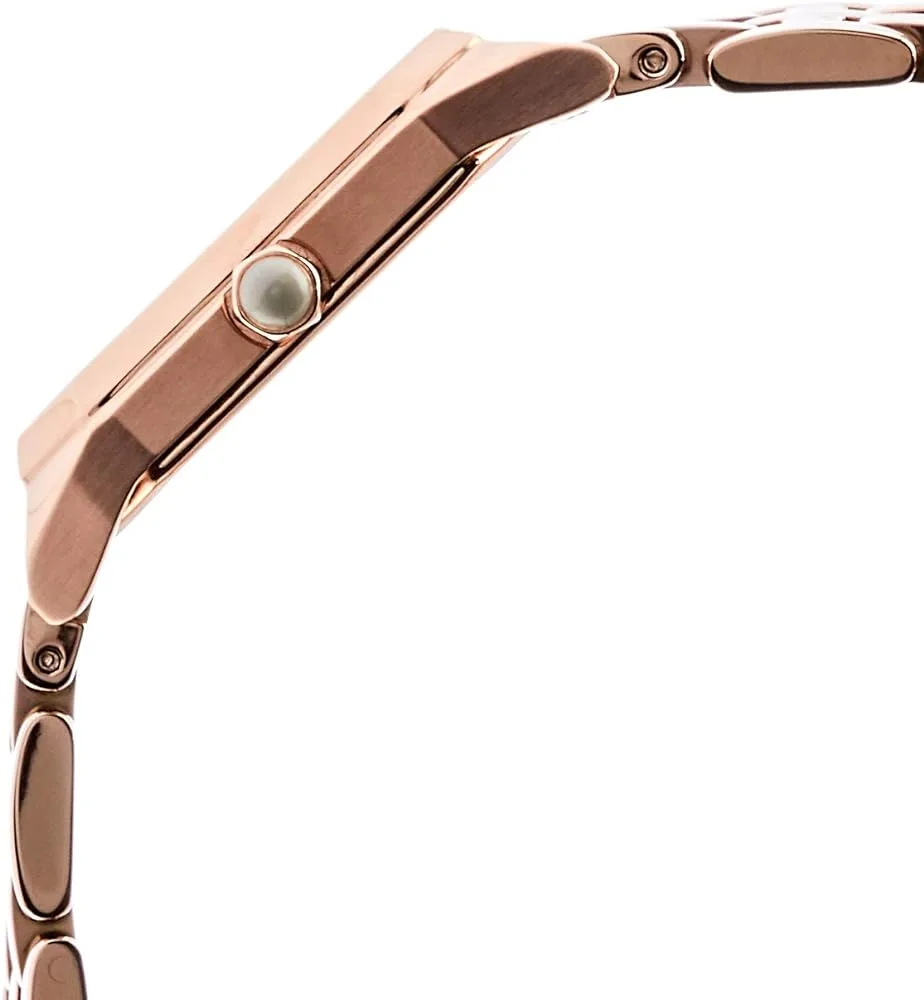 This timepiece features precise Quartz movement with a two-hand analog display, making it ideal for keeping track of time in style. The rose gold-tone stainless steel bracelet complements the overall design beautifully.