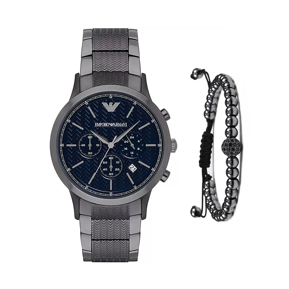 Emporio Armani AR2505 is a timeless classic reimagined. An analog stainless steel sports watch with a geometric pattern. The blue chronograph dial stands out for its uncompromising vibrancy. Includes stopwatch and date window. High-quality and durable materials will let them serve you for many years. Scratch-resistant and water-resistant. Practical and sophisticated, this watch will make you feel confident and stylish.