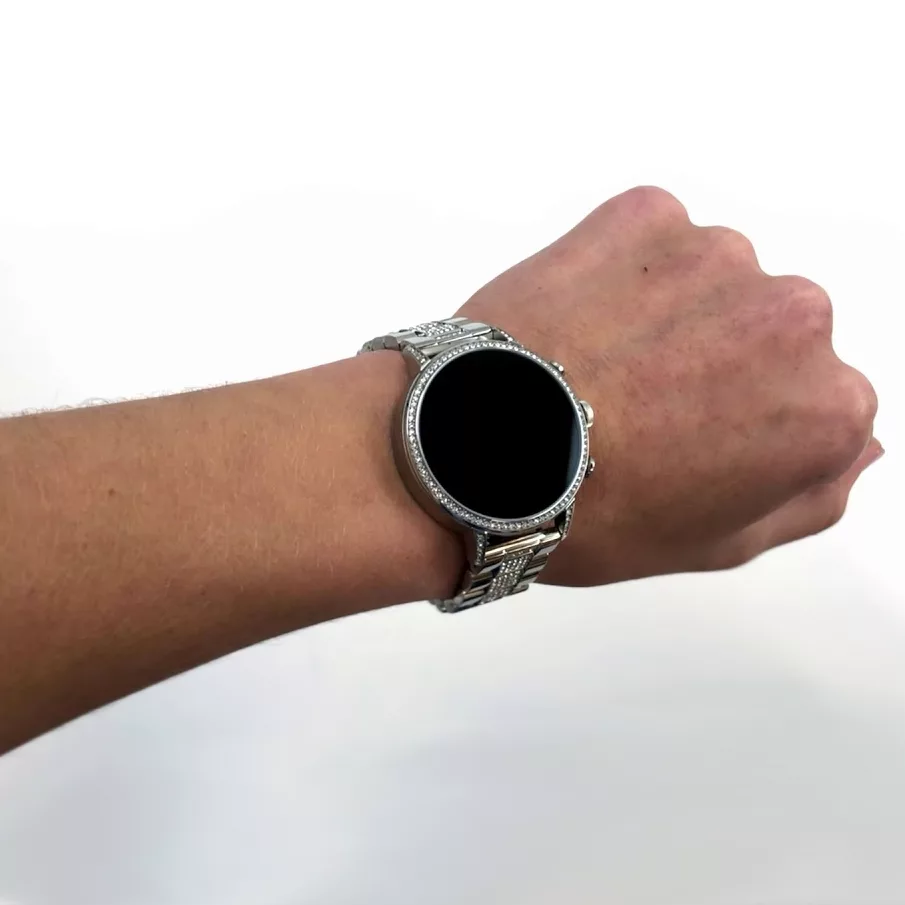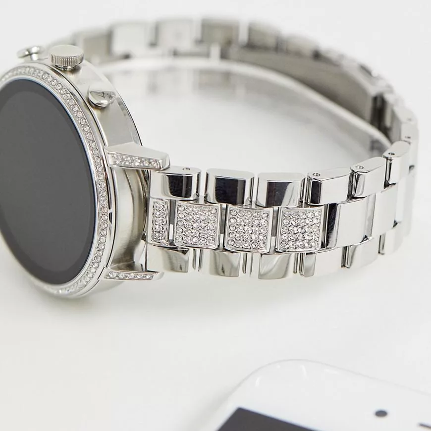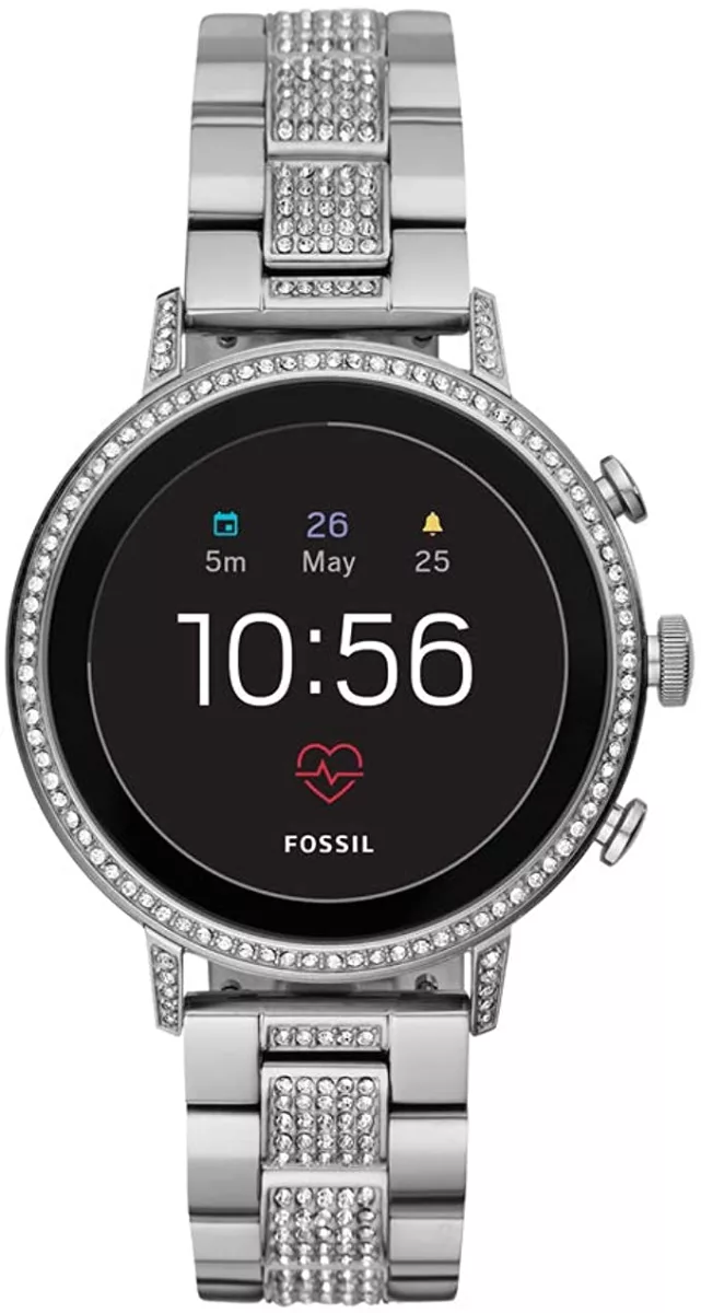 Fossil FTW6013J is smart and elegant accessory for tech-savvy women who want to go along with the times. Swarovski-covered silver stainless steel is set with a classic round digital dial that works with your touch and fitted with a black silicone strap for maximum comfort. Powered by Google OS this smart watch connects with your mobile phone and allows you to browse all of you favourite apps. Check your notifications use GPS track your activity count or health rate without losing any moments of your life. Adapted for iOS and Android devices.”