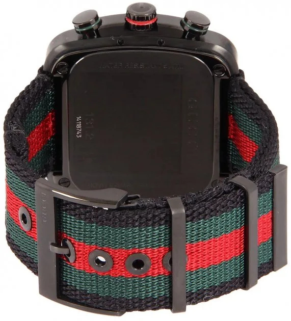 Introducing the brand new and authentic Gucci Coupe Watch for Men, model YA131202, a true representation of style and luxury. This exquisite timepiece features a sleek and modern design that effortlessly complements any ensemble. The black PVD steel case exudes a sense of sophistication, while the black, green, and red nylon strap adds a touch of vibrancy and uniqueness to the watch. The tang clasp ensures a secure and comfortable fit on your wrist. The fixed bezel further enhances the watch’s sleek profile, while the black dial exudes elegance and simplicity. Powered by a battery-operated quartz movement, this watch guarantees accurate timekeeping for your everyday activities. The push-in crown allows for an easy adjustment of the time, adding to the watch’s user-friendly design. Protected by scratch-resistant sapphire crystal, the dial remains clear and pristine, even with daily wear.