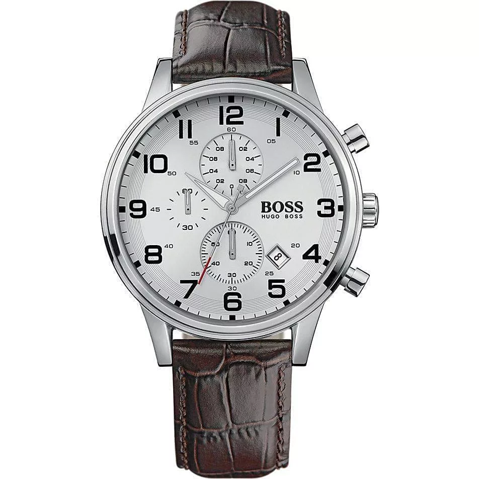 Hugo Boss HB1512447 is a time-honored model with refined taste. The contrast of the white dial and brown leather strap will never go out of style while silver stainless steel add a flair of confidence. Full chronograph will keep time under control. Water-resistant and protected by a mineral glass against a mechanical damage. A reliable and functional chronograph that will enhance your business style.