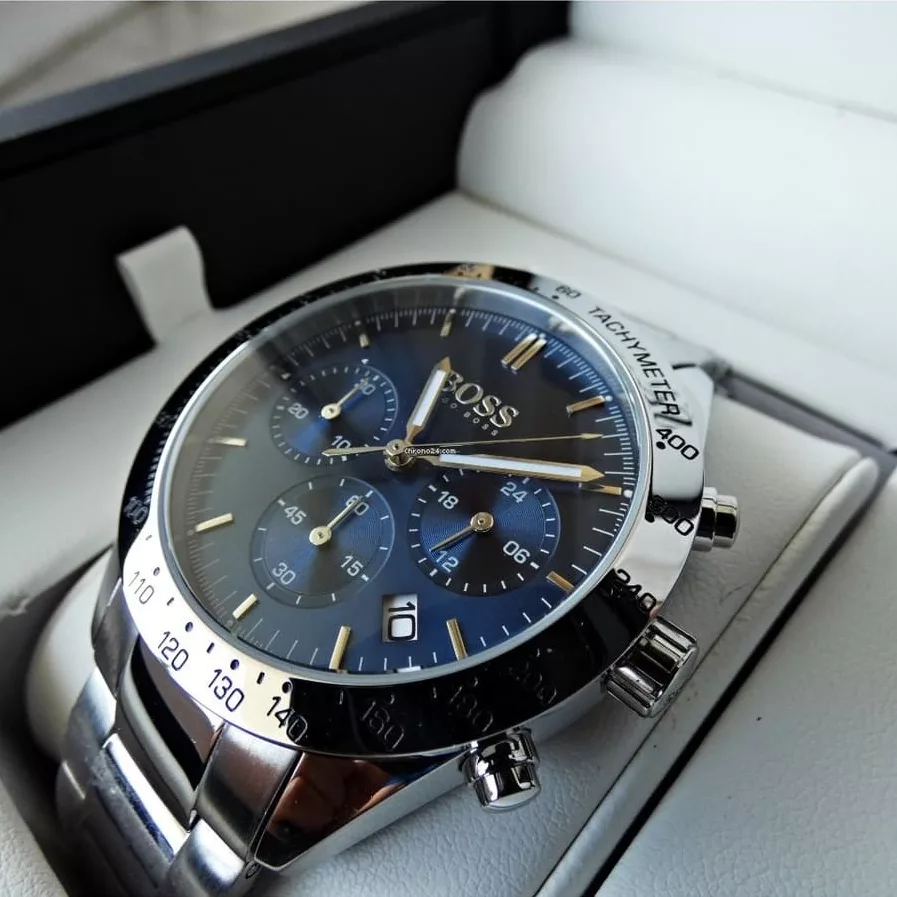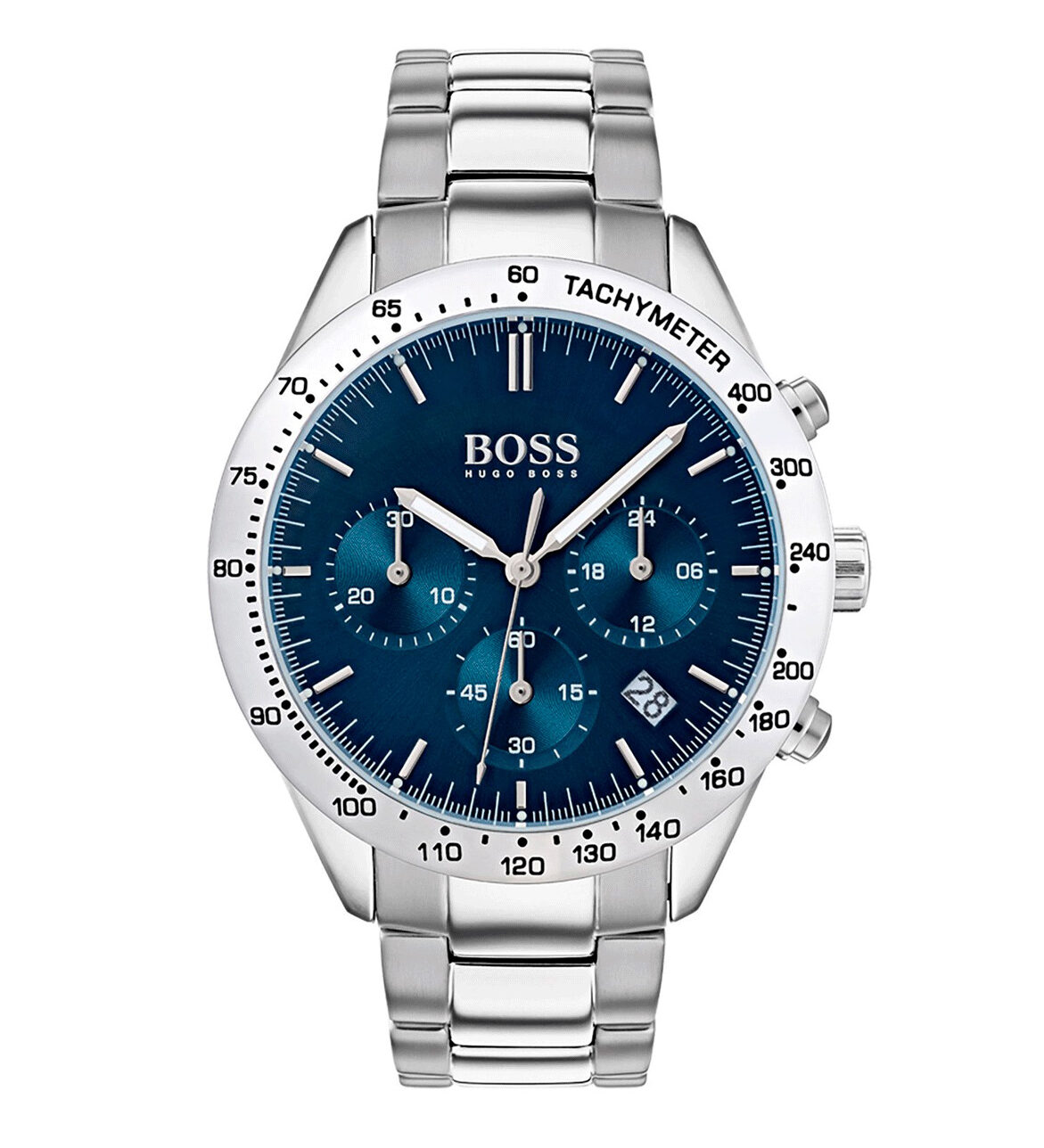 Hugo Boss HB1513582 is a luxury sports watch that impresses with its functionality and aesthetics. Vibrant blue dial with three subdial chronograph strikes with its clever design meanwhile the silver details in the the dial add to its sophistication. Includes a tachymeter. The ensemble is completed by a stainless steel bracelet with a silver PVD coating. Powered by Quartz. Water-resistant and protected by mineral glass to ensure you a long quality service.