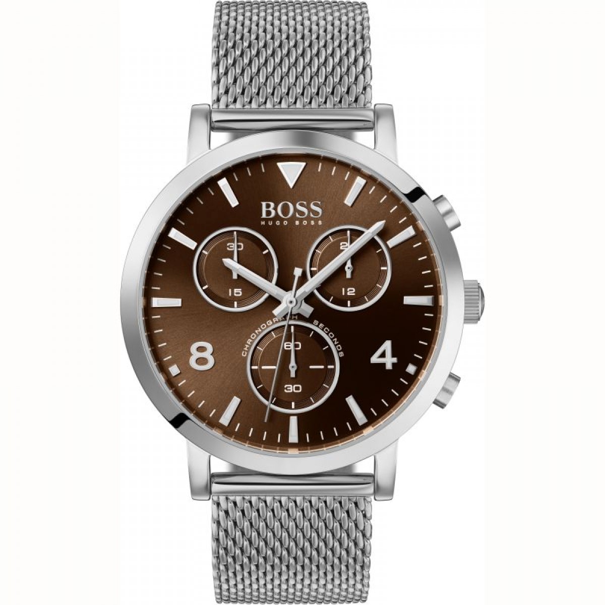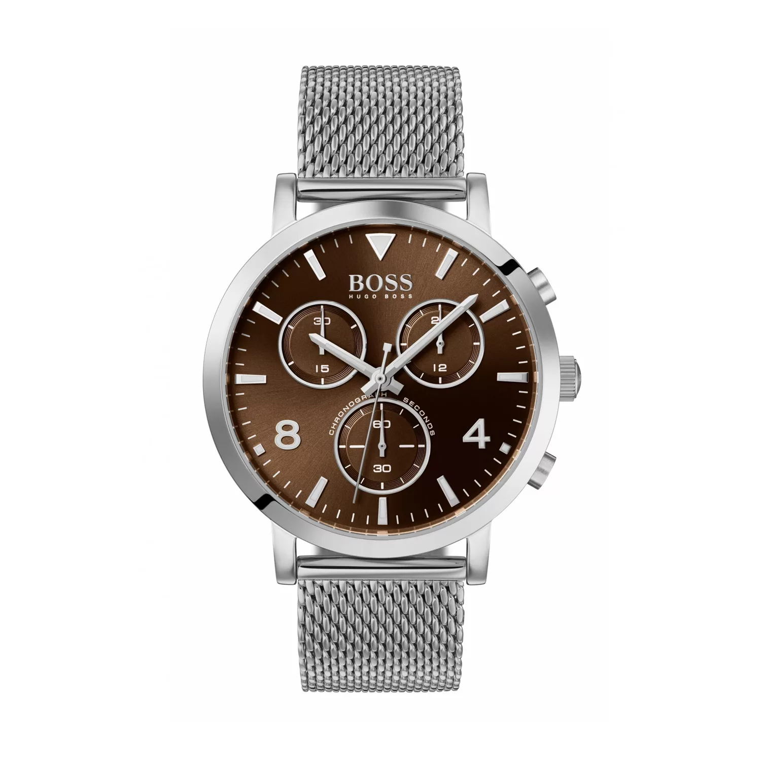 Hugo Boss HB1513694 is a quaint classic for those who love to be on the move. Silver stainless steel Milanese mesh strap, combined with a warm brown chronograph dial. Water-resistant and protected by mineral glass. Functional and alluring, this noble and stylish watch will not leave you indifferent and will become an eye-catching statement in a matter of time.