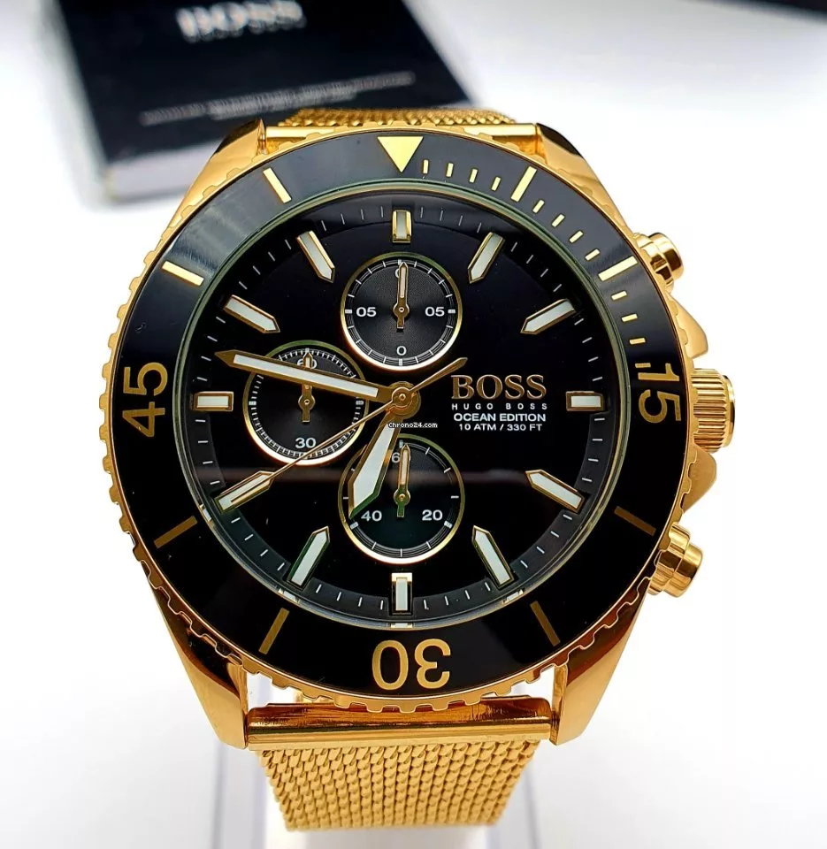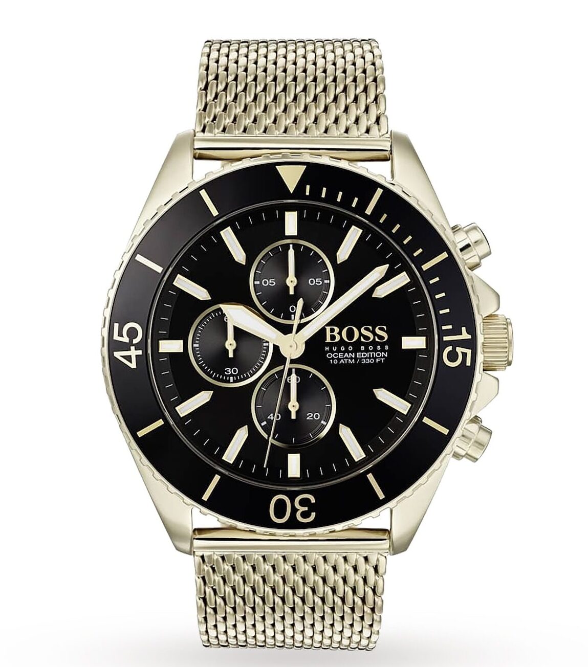 Hugo Boss HB1513703 is a sports watch that stand out with its regal character. Jet black chronograph dial is enhanced by a matching bezel with gold details. Combined with a gold Milanese loop stainless steel strap it creates a sleek and functional timepiece that you can rely on. Water-resistant and protected by mineral glass to ensure you a long quality service. This accessory will become a striking and tasteful accent in your collection.