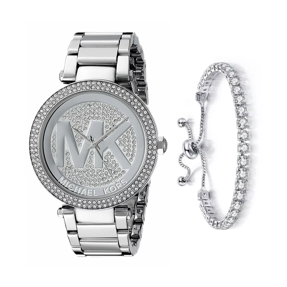 Michael Kors MK5925 is staggering and radiant accessory for women. Crafted in silver stainless steel with matching silver dial and bezel covered with Swarovski crystals and adorned by signature logo this watch is designed to stand out and make you shine bright. Powered by Quartz. Water-resistant and protected by mineral glass to ensure you a long quality service. It is a unique and distinctive accessory that will add that ultimate glamour vibe to your look.