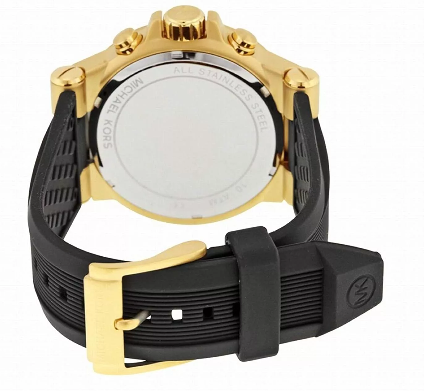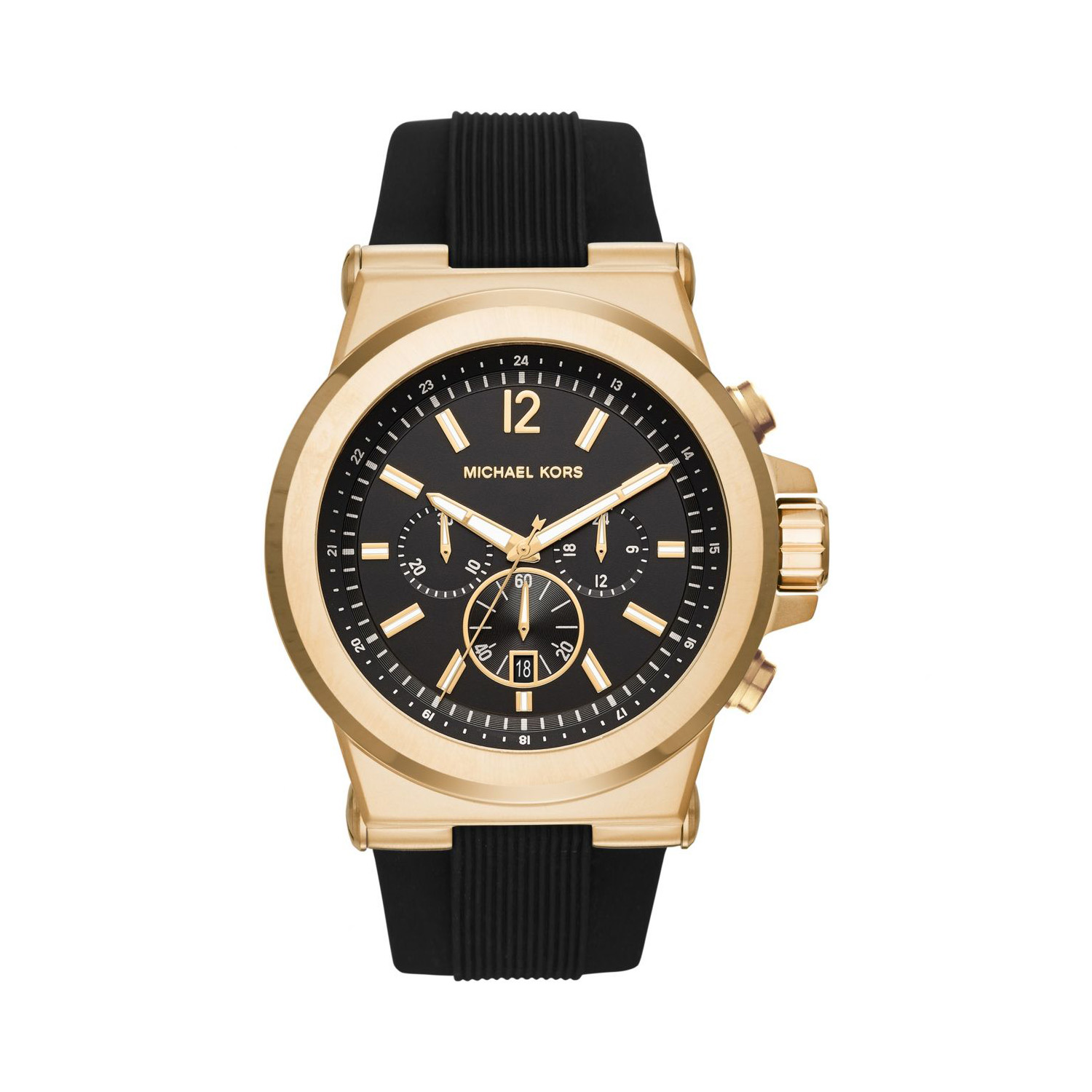 Michael Kors MK8445 is a regal classic for men with exquisite taste. The practical silicone strap is elevated by a solid 48mm stainless steel case in gold. The black matte dial is highlighted by gold elements and the chronograph. Made of high-quality and durable materials that will last for many years. This is an impeccable design for all occasions that will make time work in your favor.