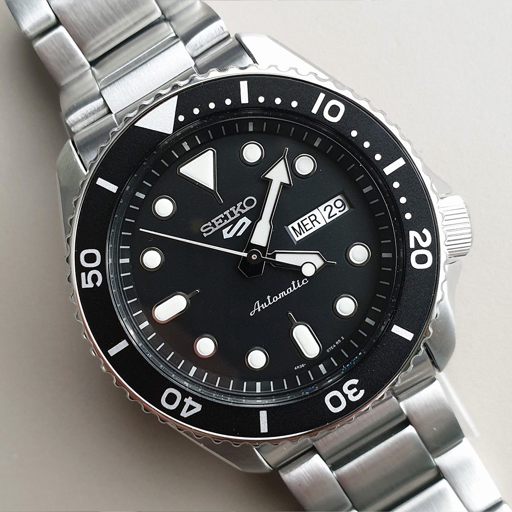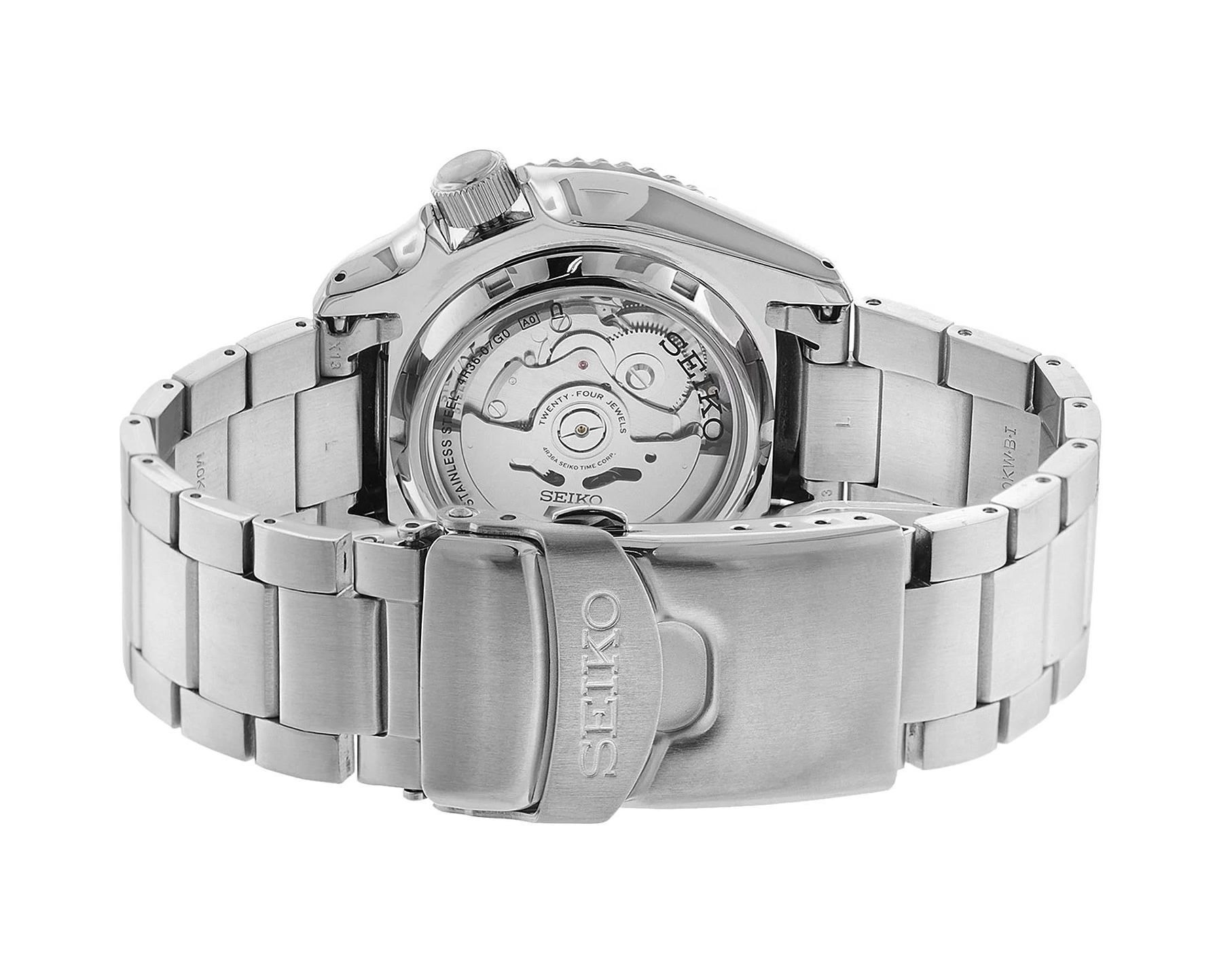 True to the five key traits of the original Seiko 5—automatic movement, day-date display at 3 o’clock, recessed crown at 4, water resistance, and a tough case and bracelet—the SRPD55K1 is engineered for daily wear. It boasts a screw-down see-through case back, a unidirectional rotating bezel, and water resistance up to 10 bar.
