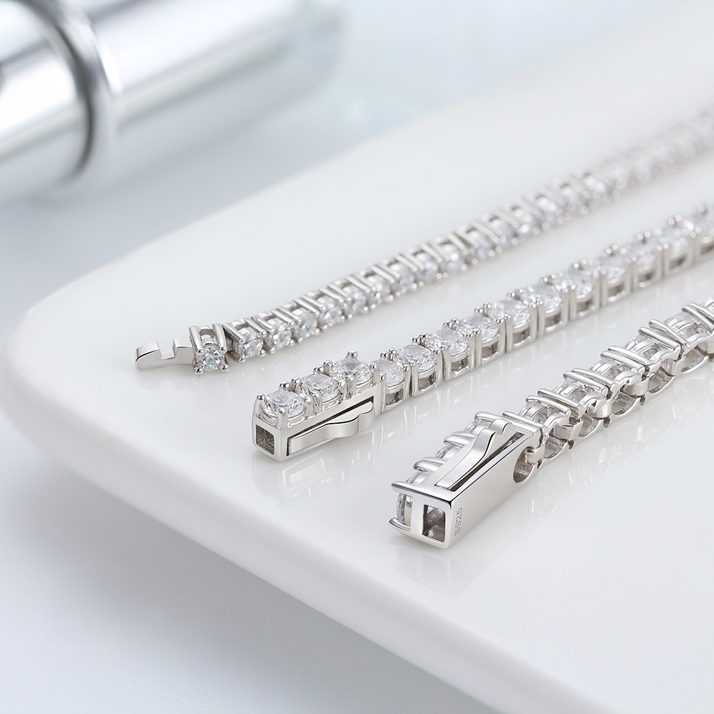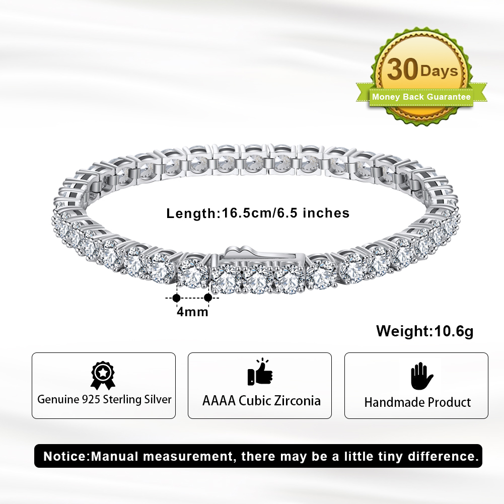 This stunning 925 Sterling Silver Tennis Chain Bracelet is a true statement of elegance and sophistication. Featuring a bold 4.0mm width, it sparkles with brilliant AAAA White Cubic Zirconia stones that radiate timeless beauty. Crafted from premium sterling silver and finished with rhodium plating for enhanced shine and durability, this 6.5″ bracelet is perfect for complementing both casual and formal attire. A classic and versatile accessory that makes a thoughtful gift or a luxurious addition to your jewelry collection.