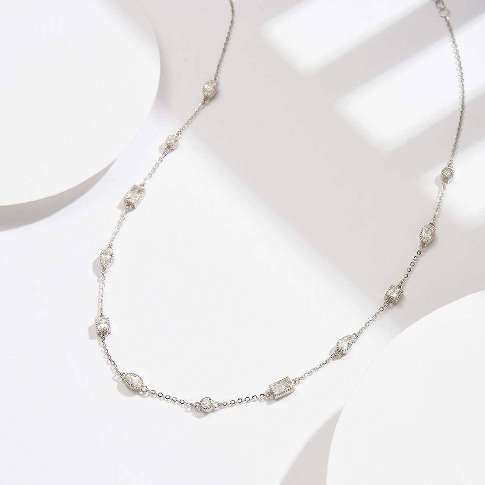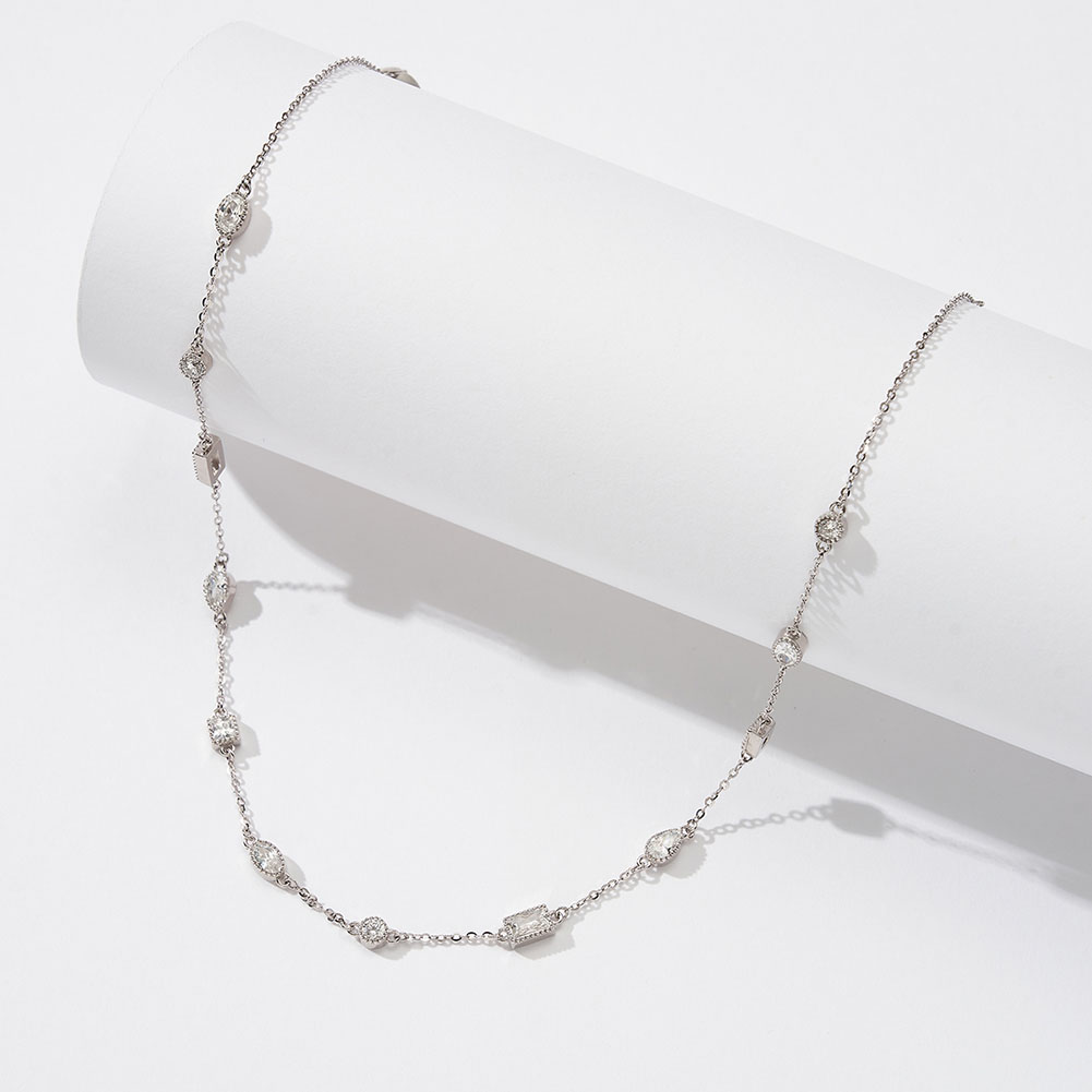 Make a statement with this stunning 925 sterling silver necklace, featuring dazzling 5A clear CZ stones that bring elegance to any outfit. Rhodium-plated for a brilliant, tarnish-resistant finish, this necklace is crafted to retain its radiant beauty over time. With an adjustable length of 35.5+7.5cm (14+3 inches), it sits perfectly on the neckline for a sophisticated look. Ideal for both special occasions and everyday glamour, this necklace is a beautiful addition to her jewelry collection and a perfect gift to showcase timeless style.