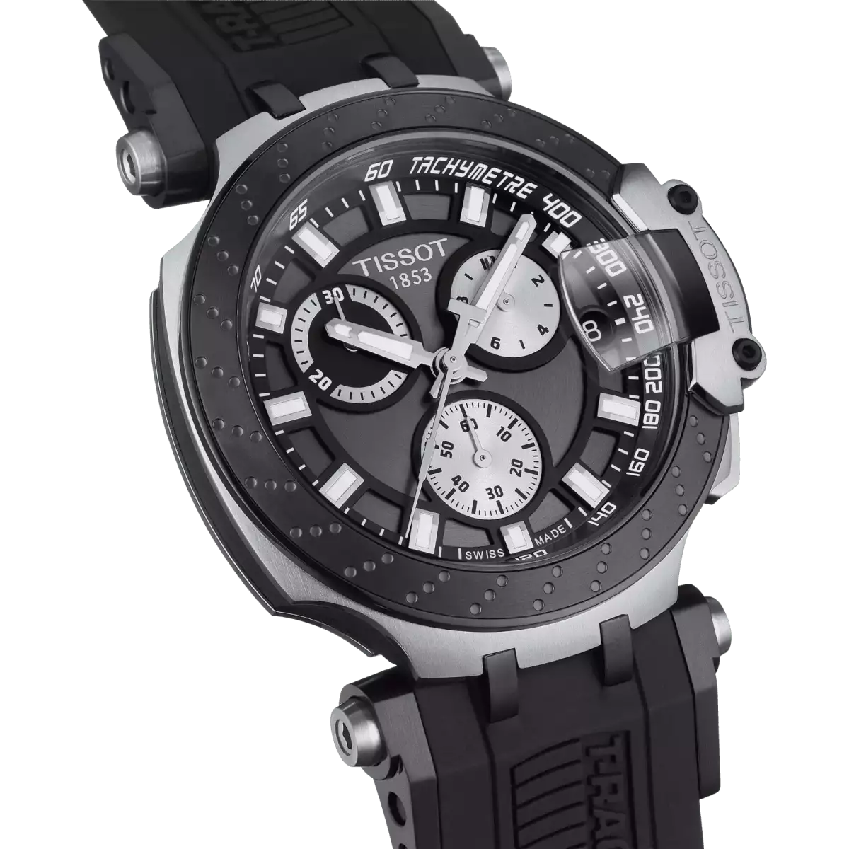 Dynamic and precise, the Tissot T-Race Chronograph embodies the spirit of motorsport with bold design and superior functionality. The 43mm round stainless steel case is complemented by a durable plastic composite structure, offering both strength and lightweight comfort.