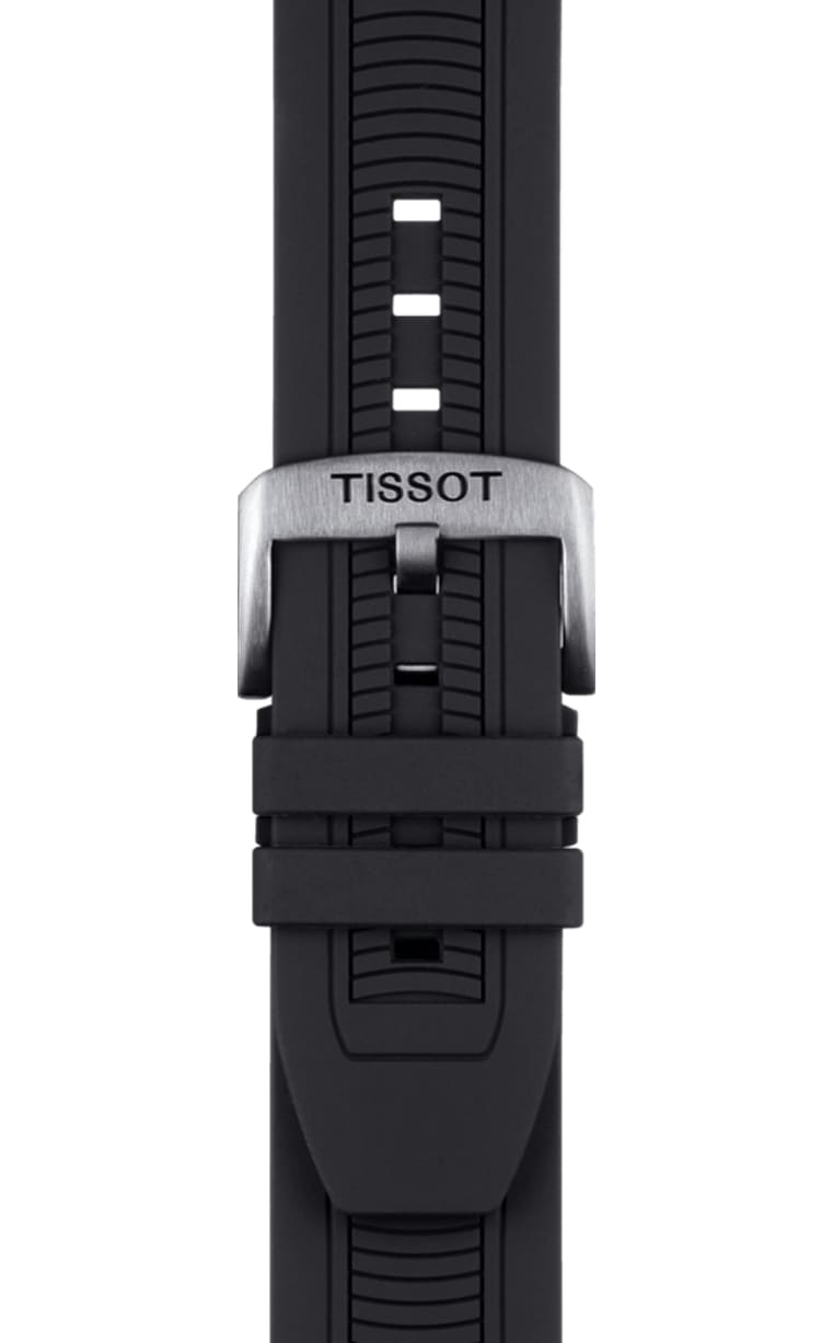 Its 22mm strap with a secure pin buckle closure ensures a comfortable and stable fit. Measuring 12mm in thickness, the T-Race balances a strong wrist presence with refined ergonomics.